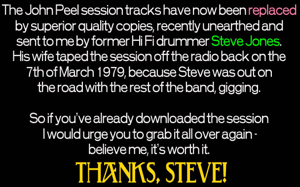 ‘Run Run’ was played by John Peel, who liked it so much he invited the group to record a session for his legendary Radio One evening programme. This session, from March 1979, contained four great tracks including what for me is Hi Fi’s finest moment – a stunning song called ‘The Silence.’